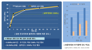 두 제품 모두 별도의 보양막이나 급열 양생 없이 타설 후 압축강도를 빠르게 확보하는 기술이 핵심인데요. 조기에 높은 강도를 발현해 신속하고 안정적인 콘크리트 품질 확보가 가능합니다.