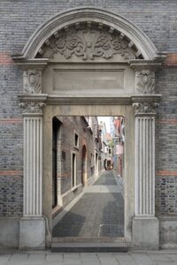 대표적인 것이 ‘석고문(石庫門)’ 주택입니다. 19세기 후반 상하이에서 등장한 석고문은 전통 사합원 평면을 기반으로 하되, 2~3층의 입체적 구조에 서양식 장식 요소를 가미한 독특한 연립주택입니다. 석재 문틀과 두꺼운 목판 문, 좁은 골목을 따라 이어지는 회색 벽돌과 유럽풍 문양은 상하이의 근대적 풍경을 상징합니다. 현재 장원 지역에서는 석고문을 보존하고 리모델링하여 플래그십 스토어와 문화공간으로 재탄생시키고 있습니다.