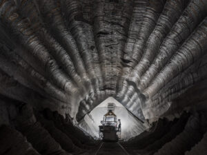 길이만 3,000km에 달하는 우랄칼리 칼륨 광산의 내부를 촬영한 작품입니다. 분당 7~8톤의 광석을 깎아내는 연삭휠 120대가 지나간 벽면에는 역설적이게도 아름다운 장미꽃 모양의 곡선이 남아있습니다.