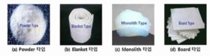 출처: 산업통상자원부(건축용 에어로젤 단열재의 성능평가방법 국제표준화에 관한 보고서), 여러 형태의 에어로겔 단열재